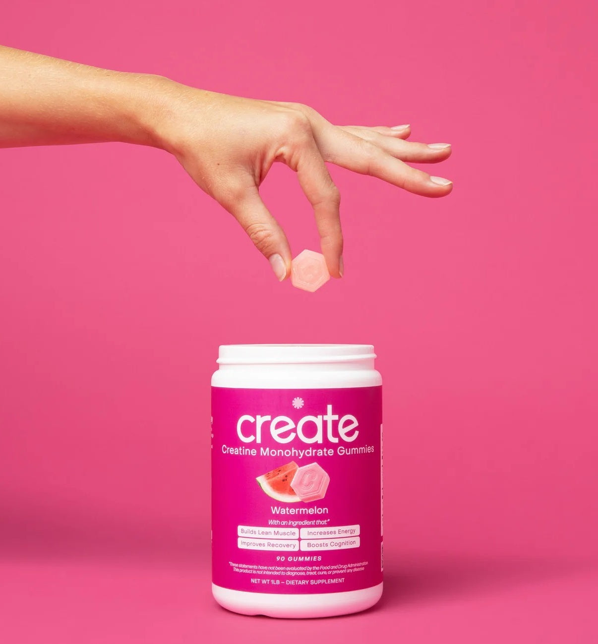 Create Creatine Monohydrate Gummies for Men & Women |1.5g Creatine per Gummy for Muscle Strength, Endurance, Recovery, & Focus | Vegan, Non-GMO, Gluten-Free l 90 Count