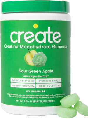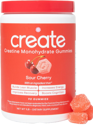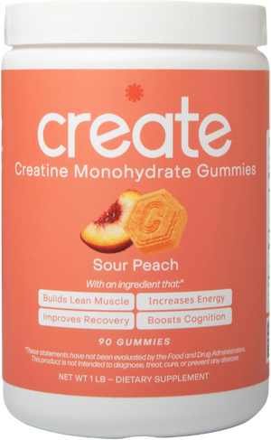 Level up with the Ultimate Starter Bundle, a complete six-month supply of Create Creatine Gummies in all six crave-worthy flavors. Inside you’ll get one tub each of: Sour Green Apple, Blue Raspberry, Watermelon, Orange, Sour Cherry, and the brand-new Sour Peach.